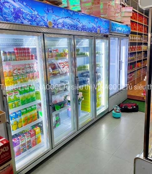 2.1 Tủ mát siêu thị 4 cánh kính bảo quản thực phẩm dài lâu