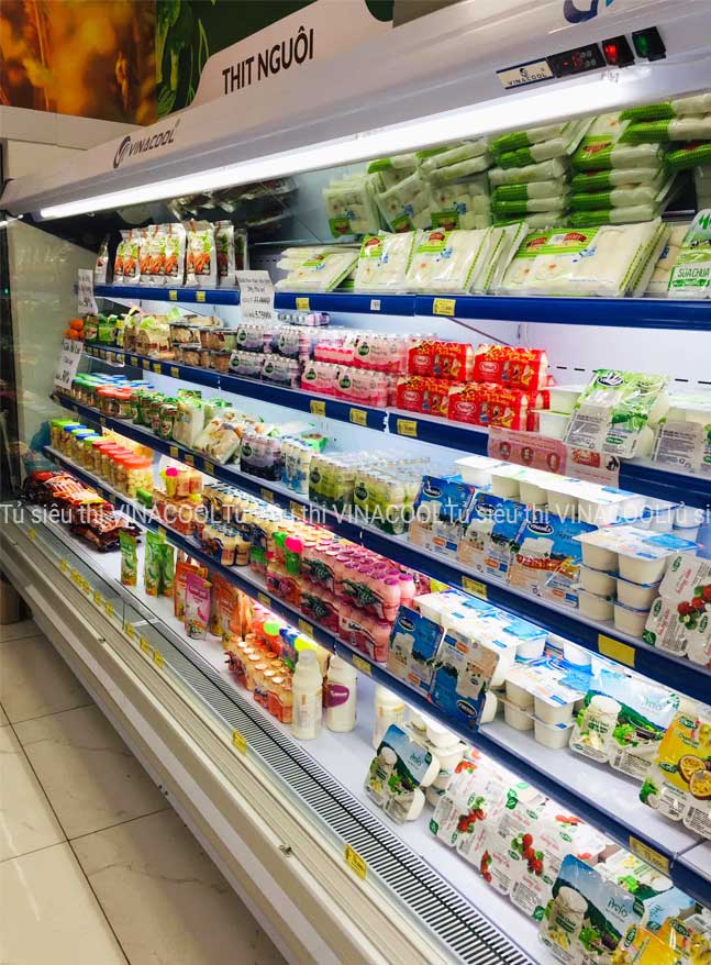 - Tủ giúp trưng bày, bảo quản thực phẩm tốt nhất. Thực phẩm có hình thức đẹp, thu hút và thời gian sử dụng kéo dài hơn giúp tăng doanh thu tối đa cho cửa hàng.
